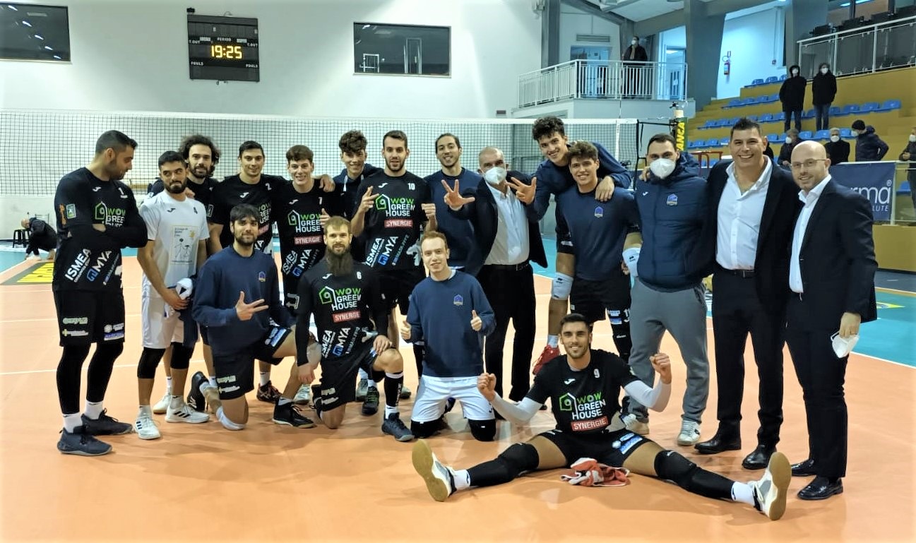 TERZO SET. Primo allungo Wow Green House Aversa sull’ace di Diana (3-5). La Shedirpharma però non ci sta, prova a non far scappare il gruppo del presidente Sergio Di Meo e si riporta in parità a 5. Quando Peripolli sfrutta le mani del muro scomposto di Aversa i padroni di casa conquistano un +2 (9-7) costringendo coach Tomasello a fermare per la prima volta il gioco per 30 secondi. Al rientro in campo immediata reazione: 9-9. Punto a punto fino alla botta al servizio di Peripolli che costringe Aversa ad attaccare troppo distante dalla rete con Sacripanti che in diagonale non trova il campo. E’ 14-12. La sfida torna in parità a 16. I padroni di casa di Esposito provano a portarsi avanti (21-19) ma Trillini a muro e poi Sacripanti al termine di uno scambio lunghissimo conquista il sorpasso (21-22) costringendo il tecnico di Massa Lubrense a fermare il gioco per parlare coi propri ragazzi. Al rientro in campo Sorrenti spara out (conferma anche dal videocheck) ed è 21-22. Meno due alla vittoria della gara. Morelli con una botta dai 3 metri regala 2 match point. Il primo è annullato, non il secondo: Morelli sfrutta il muro e chiude 0-3 (23-25). Tre punti importantissimo per brindare al 2022.