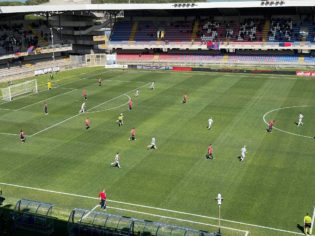 SECONDO TEMPO. Subito un brivido per il Matese: cross al centro per Fall che colpisce di testa a due passi dal palo ma non centra – fortunatamente per i verdeoro – la porta. Al 52′ si riportano avanti i rossoblù di casa: azione manovrata perfetta, Lisi è freddissimo, si libera di un difensore e poi incrocia ingannando Del Giudice in uscita. E’ 2-1. Al 70′ la Samb prova a chiudere il match: cross di Alboni per Fall che stacca da solo all’altezza del dischetto, trova lo spazio dove il portiere non può arrivare ed è 3-1. Il Matese però è vivo: prima Galesio di testa e poi Napoletano colpisce la traversa con un bolide su punizione. Ricciardi la riapre a 12 dalla fine: cross dalla trequarti, sotto la tribuna, che diventa un tiro che supera Knoflach e segna il 3-2. Il Matese va ad un passo dal pareggio con Galesio: assist al bacio di Szyszka e tiro a botta sicura, Knoflach veste i panni di SuperMan e para in caduta, sulla ribattuta Napoletano viene steso ma l’arbitro lascia proseguire. Nei 4 recuperi occasioni solo per i padroni di casa, finisce così. E’ 3-2 per la Samb.