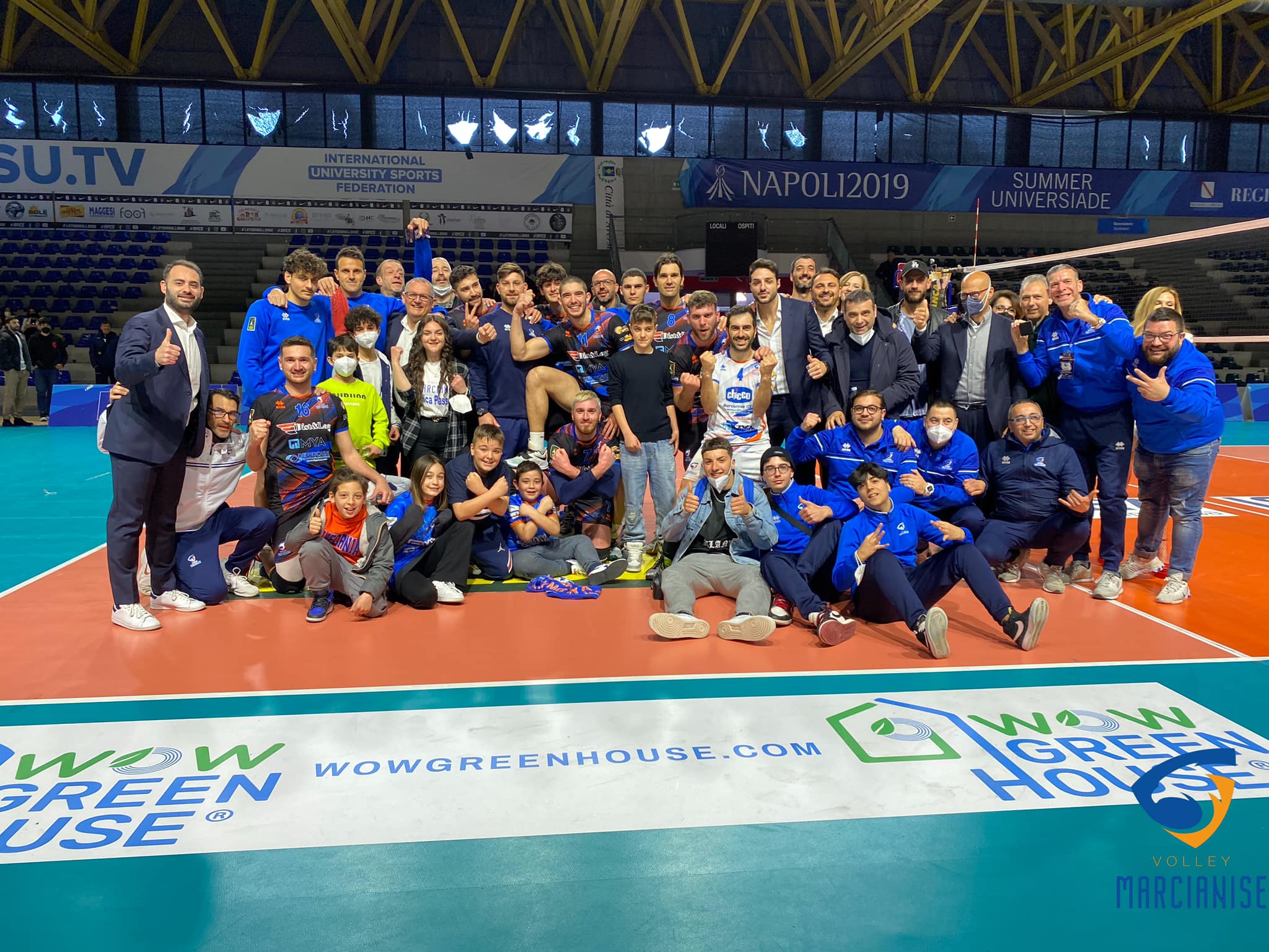 Volley Marcianise: Siciliano, Leone Alfonso ne, Vetrano 6, Vacchiano (L1), Faenza 2, Tartaglione 23, Libraro E. 15, Libraro A. 3, Ndrecaj 12, Cucino, Montò 12, Bizzarro (L2). All. Francesco Racaniello