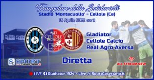 Appuntamento allo stadio ‘Montecuollo’ di Cellole sabato mattina dalle 11 per il ‘Triangolare della solidarietà’. Oltre ai padroni di casa ci saranno Real Agro Aversa e Gladiator. Tre partite da 25′: si inizia con Cellole-Gladiator, poi Gladiator-Real Aversa e Real Aversa-Cellole. Seguiranno premiazioni per i vincitori e targhe ricordo della kermesse. Come da accordi con la dirigenza rossoblù, il torneo sarà seguito in diretta streaming attraverso le pagine del Gladiator 1924, Sportcasertano e Real Agro Aversa nel cuore.