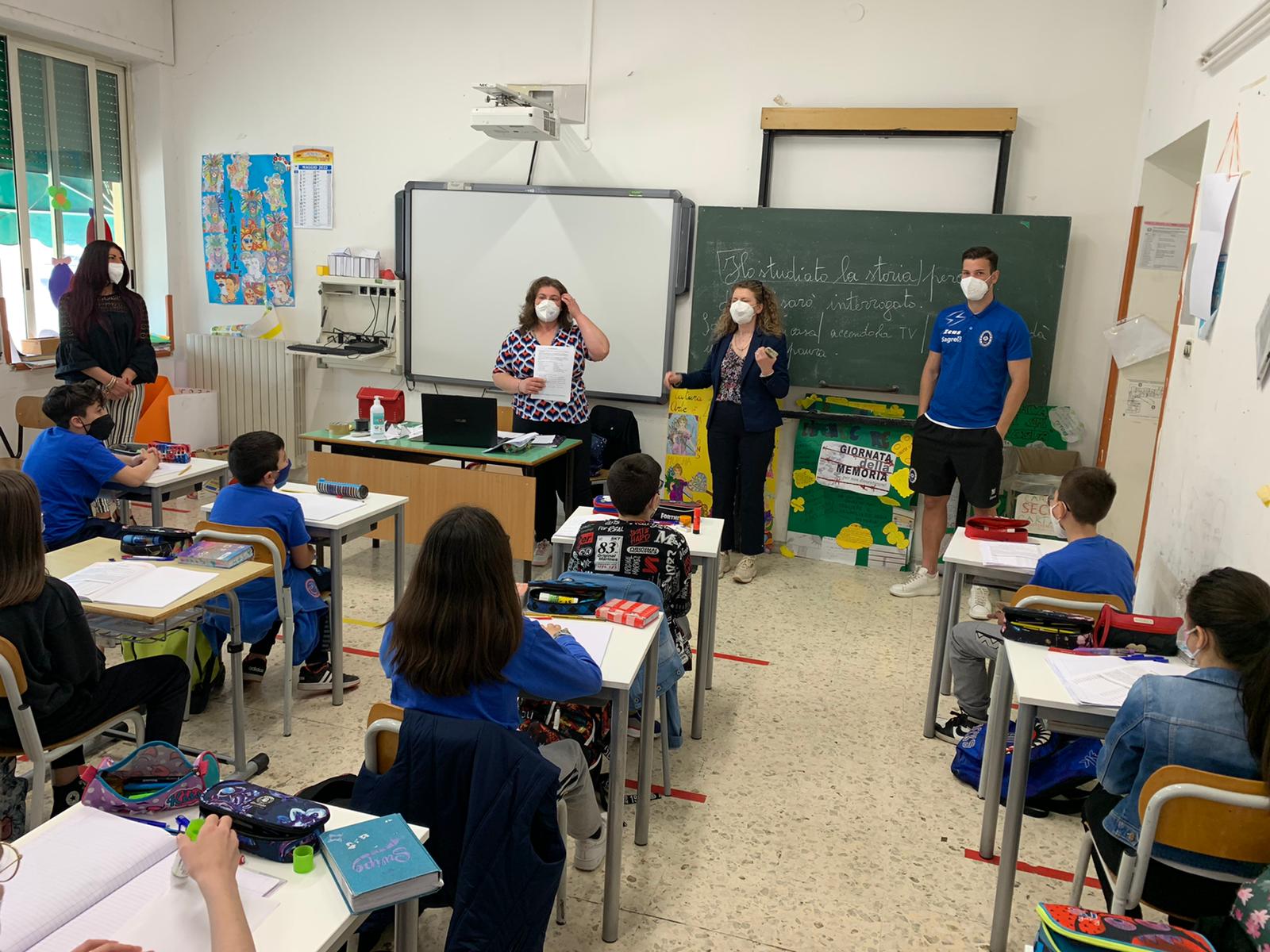 SANTA MARIA CAPUA VETERE – L’iniziativa “Dalla Scuola allo Stadio”, promossa dal Gladiator 1924 S.S.D. A.R.L., sta riscuotendo grande entusiasmo tra gli studenti sammaritani. Stamattina il calciatore nerazzurro Andrea Arcidiacono ed il giornalista Domenico Vastante sono transitati in circa 40 classi complessive dell’Istituto Comprensivo “Principe di Piemonte” e dell’Istituto Comprensivo 2 “Rita Levi Montalcini”, così da invitare bambini e ragazzi per la partita, in programma domenica alle 14 contro l’Arzachena allo stadio “Mario Piccirillo”, che può valere la salvezza in Serie D.