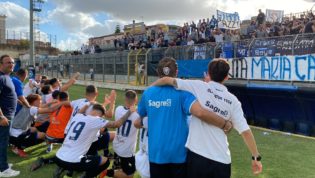 SECONDO TEMPO. Ad inizio ripresa la Puteolana 1902 intende approfittare della superiorità numerica e spinge il piede sull’acceleratore. Gatto calcia alto mentre Romano arriva con un attimo di ritardo sul passaggio invitante di Esposito (49’). Da trenta metri Avella esplode un bolide che Bufano smanaccia in corner (51’). Il Gladiator del direttore sportivo Gaetano Romano non soffre dell’uomo in meno ed al 58’ si riporta in vantaggio. Il cross di Tomi viene toccato con un braccio da Avella e l’arbitro assegna il calcio di rigore che lo stesso capitano nerazzurro realizza, spiazzando Lamberti. Anche per Tomi primo goal stagionale. I flegrei si appoggiano spesso sulle sortite offensive di Esposito e sul gran tiro da fuori di Gatto che spaventa la difesa sammaritana: Bufano devia come può il suo missile al 60’. Teore Grimaldi corre ai ripari e cambia volto alla squadra con cinque sostituzioni. Tra tutte Squerzanti è la spina nel fianco della difesa con la sua bravura in contropiede: Lamberti si rifugia in corner al 68’. Assalto nel finale della Puteolana 1902, con i padroni di casa che restano addirittura in nove e mezzo in campo. Cipolletta entra infatti al 77’ ma si fa male dopo tre minuti e resta in campo per onor di firma perché i cambi sono già finiti. Tanti cross messi al centro da Esposito & soci ma la difesa nerazzurra è stoica per tutti i sette minuti di recupero. In contropiede Piacente sfiora il terzo goal sammaritano mentre la ghiotta chance per il pari granata sopraggiunge al 94’. Su un’azione da corner, i flegrei ci provano per tre volte ma i nerazzurri, veri gladiatori, salvano sulla linea sia le conclusioni di Amelio che di Gatto, infine la traversa dice no al tentativo di Guarracino. Sofferenza fino all’ultimo istante, al triplice fischio urlo liberatorio del Gladiator per il terzo trionfo in campionato.