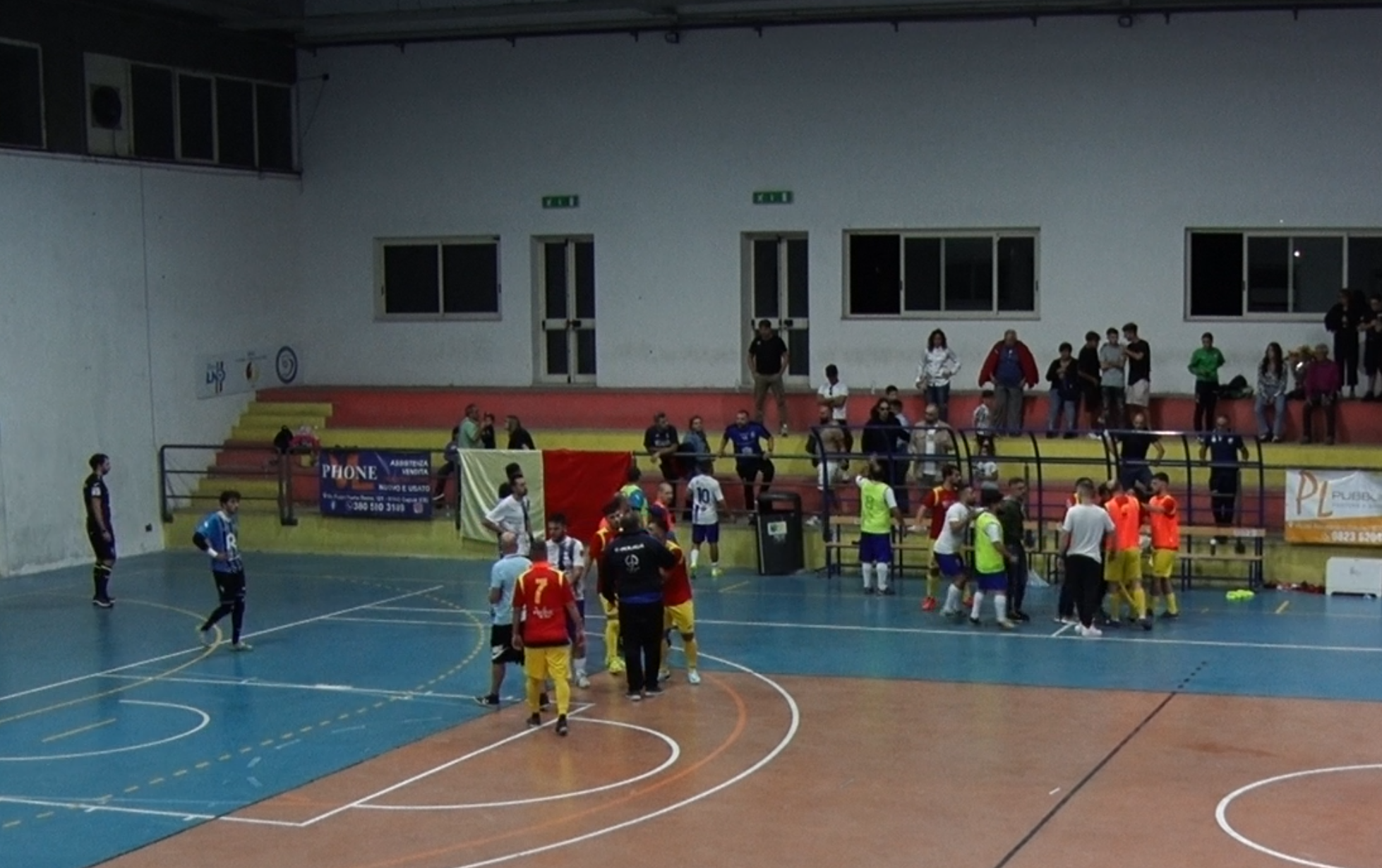 H) alcuni tifosi non identificati si sporgevano dalla balaustra spingendo la panchina di ferro della ASD FUTSAL CASILINUM ADV in campo facendola ribaltare senza colpire alcun calcettista;