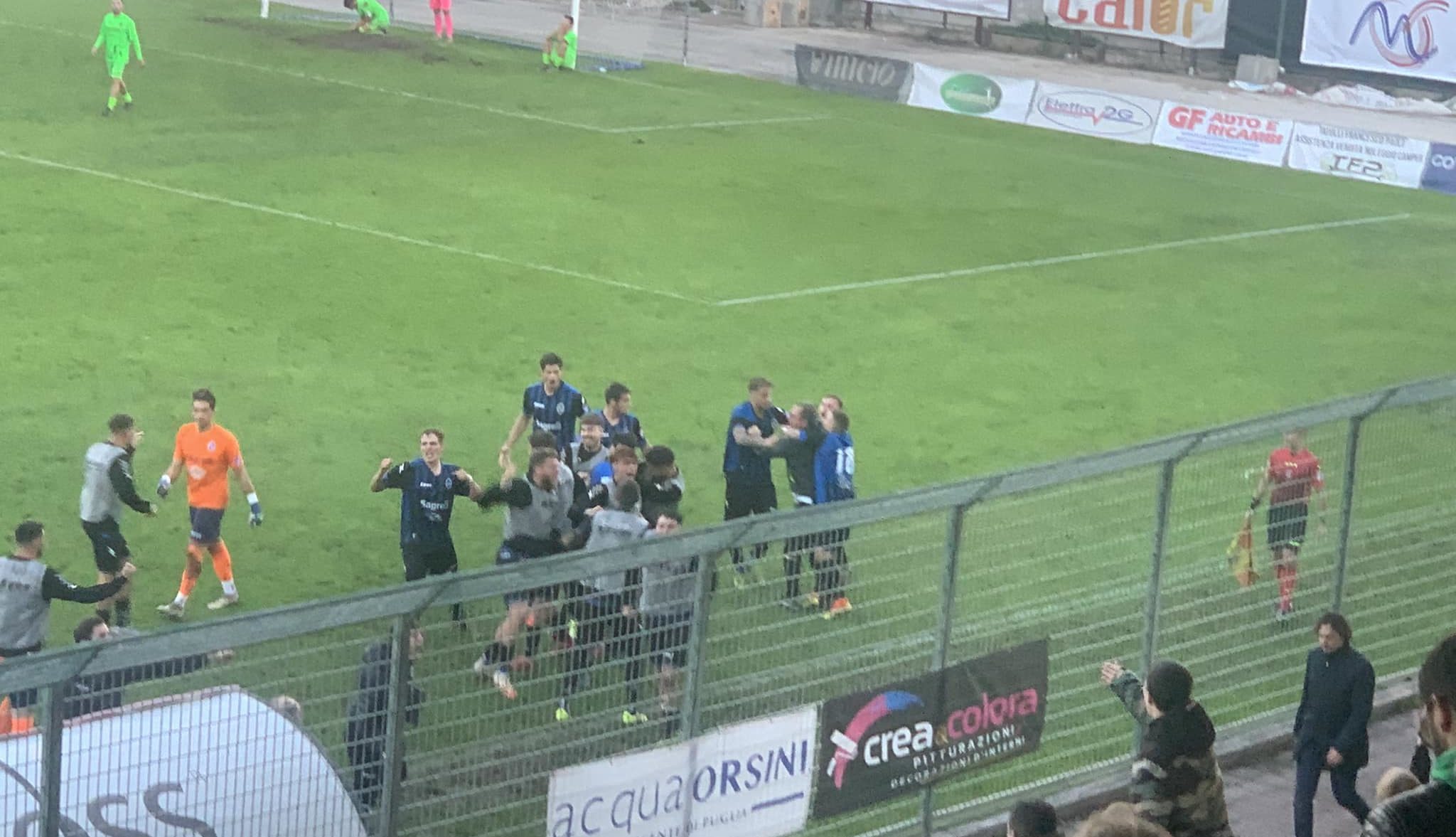 BITONTO – Un Gladiator folle riacciuffa una partita che sembrava persa contro il Bitonto. Al 94’ i nerazzurri del presidente Giacomo De Felice siglano il 2-2 finale dopo che due minuti prima avevano subito il vantaggio locale. Nel momento di difficoltà la squadra sammaritana di Teore Grimaldi risorge dalle ceneri e caccia tutto il proprio orgoglio per conquistare un punto molto importante in trasferta. Un duello da gladiatori che Tomi & soci hanno affrontato senza esclusione di colpi, lottando con il coltello fra i denti pur di uscire indenni dal “Città degli Ulivi”.