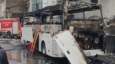 VIOLENZA PAGANESE-CASERTANA. Distrutta la facciata di un palazzo dalle fiamme del pullman