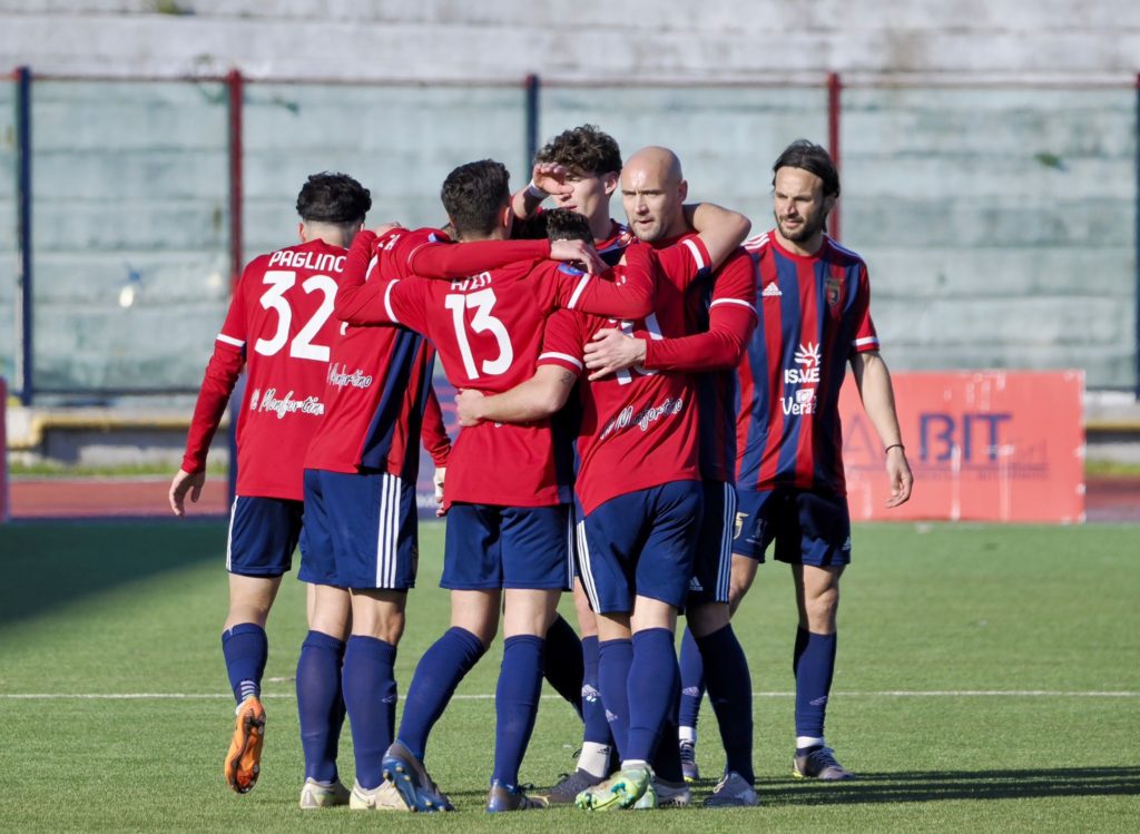 L’esultanza dei rossoblù (Foto Ausilia Ranno)