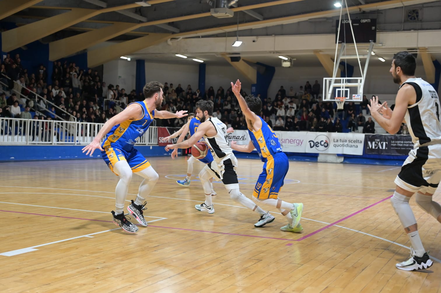 Il largo vantaggio acquisito nella prima parte di gara non ha inciso sul prosieguo della gara con i padroni di casa che hanno continuato a sviluppare il loro gioco di attacco trovando con continuità punti sia dalla distanza che sotto canestro con Romano che ha continuato il suo show personale (ha chiuso con 40 punti: 9/11 da 2, 5/7 da 3, 7/7 ai liberi, 7 rimbalzi e 3 assist), ben supportato da tutti gli elementi mandati in campo da coach Luise. Ed il risultato del terzo quarto ha espresso eloquentemente la differenza in campo: 90-60. A quel punto la gara è divenuta un lungo garbage time con i bianconeri che hanno continuato a colpire dalla lunga distanza (le percentuali finali sono state del 49% da 3 e del 65% da 2) con il pubblico a sottolineare soltanto il traguardo dei 100 punti sottoscritti in penetrazione da Cioppa dopo 4’18” e le prestazioni dei giovanissimi mandati in campo già a metà del quarto periodo.