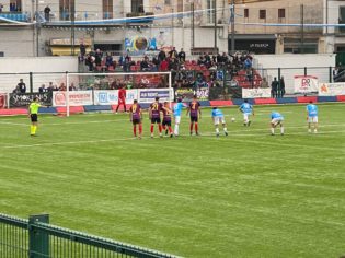 TEMPI SUPPLEMENTARI. Dopo i primi dieci minuti di equilibrio e rare occasioni, succede di tutto. All’ultimo secondo del primo tempo, il Pompei sblocca la contesa. Lancio lungo sulla sinistra per Di Paola che controlla, finta il dribbling e poi la mette in mezzo con una palombella dolcissima sulla quale si inserisce di testa Andrea Di Pietro, è il goal che fa esplodere di gioia tutto lo stadio e la tifoseria rossoblù che osanna i propri beniamini in vantaggio grazie al goal realizzato dai due ex giocatori del Gladiator. Al rientro in campo è subito il Pompei a sfiorare il raddoppio con l’ex Serrano che entra in area e calcia col sinistro ma Vivace respinge ancora col piede. Quando tutto sembrava finito, l’Albanova ha l’occasionissima per rientrare in partita ed accendere il finale di gara. 117′ Mascolo entra in area e viene steso, l’arbitro concede il penalty che potrebbe rimettere in gioco i biancoazzurri. Dagli undici metri va lo stesso Mascolo che calcia forte ma Rendina intuisce, respinge il tiro e compie il miracolo. Fuochi d’artificio al Bellucci per festeggiare l’errore del calciatore biancoazzurro che spegne le speranze di rimonta e accende la festa del Pompei che sul capovolgimento di fronte raddoppia. Contropiede di Nicola leone che viene steso in area, l’arbitro al 123′ concede un altro rigore ma questa volta al Pompei. Dal dischetto va ancora il capitano Di Pietro che non sbaglia, segna il 2-0, la sua doppietta personale e fa partire la festa in campo e sugli spalti per la conquista della finale che vedrà il Pompei sfidare la vincente dell’altra semifinale Casoria – Ercolanese.