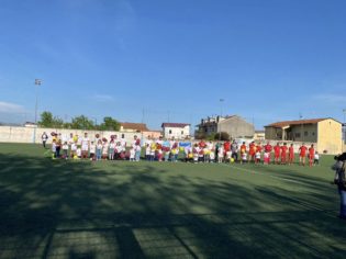Alle ore 18.00 i calciatori sono scesi in campo accompagnati, come avviene in serie A, da tanti bambini del luogo muniti di palloncini e maglia dell’evento offerta dalla società per l’occasione.