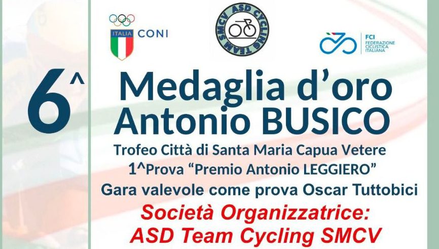 SANTA MARIA CAPUA VETERE – Cresce l’attesa a Santa Maria Capua Vetere, in provincia di Caserta, per l’appuntamento con la 6a Medaglia d’Oro Antonio Busico, in programma domenica 21 maggio. La gara, riservata alla categoria Allievi e valida come prima prova del “Premio Antonio Leggiero”, è inserita nel calendario nazionale dell’Oscar Tutto Bici.