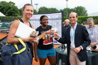 Alla finale è seguita poi la cerimonia di premiazione alla quale sono intervenuti presidente del Tennis Club Caserta Fabio Provitera con i due vice presidenti Rosario Scala e Aurelio Scotti, il responsabile organizzativo ITF George Donnelly, il Supervisor ITF Guido Pezzella, il delegato provinciale del Coni di Caserta Michele De Simone con il prof. Giuseppe Bonacci, il presidente Panathlon Giuliano Petrungaro, per la Cogepa la Marianna Paone, Pasquale Pilla della SMC, Miriam Fiorino e Antonio Serino della Toyota Funari e Massimo Alois della Cantine Alois.