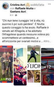 Cristina Acri Assessore allo Sport del comune di Afragola, ha salutato attraverso il suo profilo facebook Raffaele Niutta ormai ex patron dell’Afragolese. L’imprenditore la prossima settimana rileverà ufficialmente l’Angri.