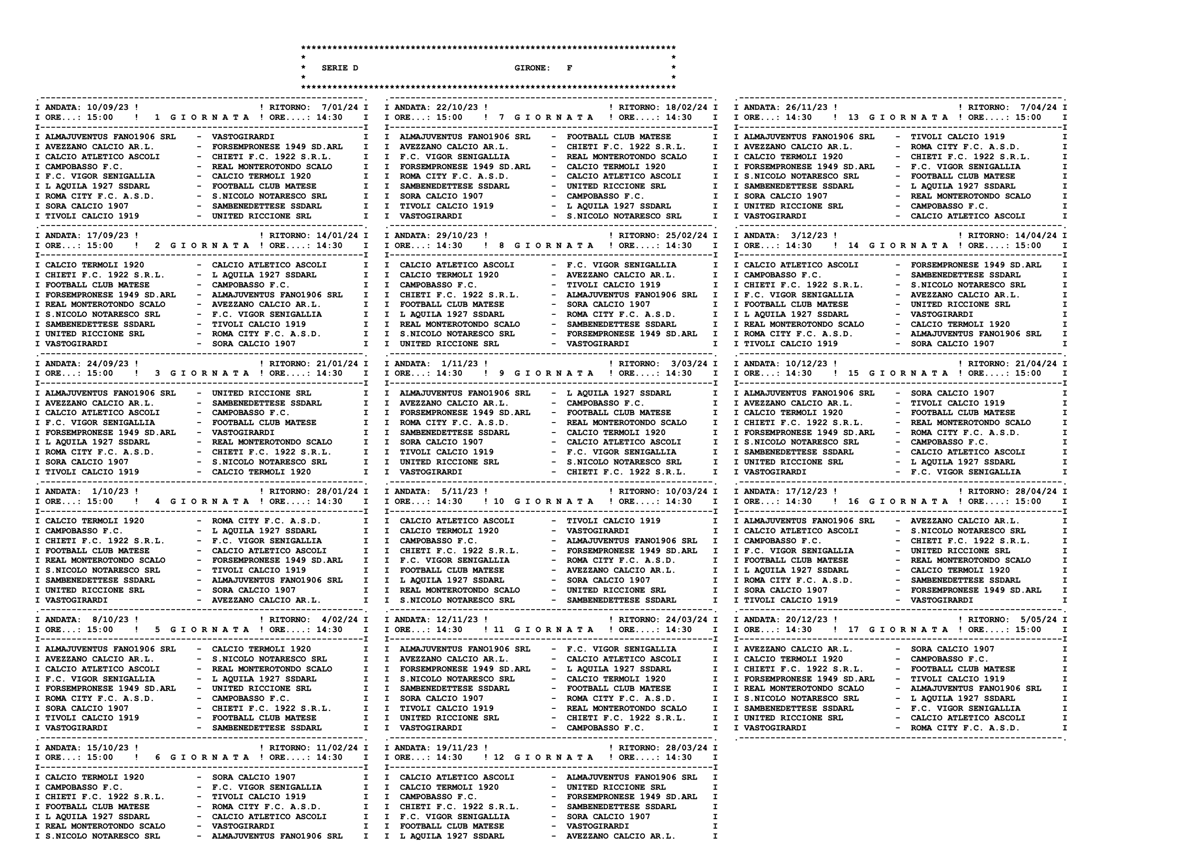 Sorteggiati i calendari di serie D. Avvio davvero difficile per il Matese che affronterà L’Aquila e Campobasso nelle prime due giornate. Poi trasferta a Senigallia e Atletico Ascoli in casa. Tivoli, Roma City e Sora. Chiusura casalinga contro il Chieti. Ecco di seguito il cammino dei verdeoro.