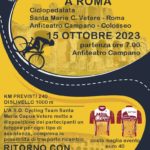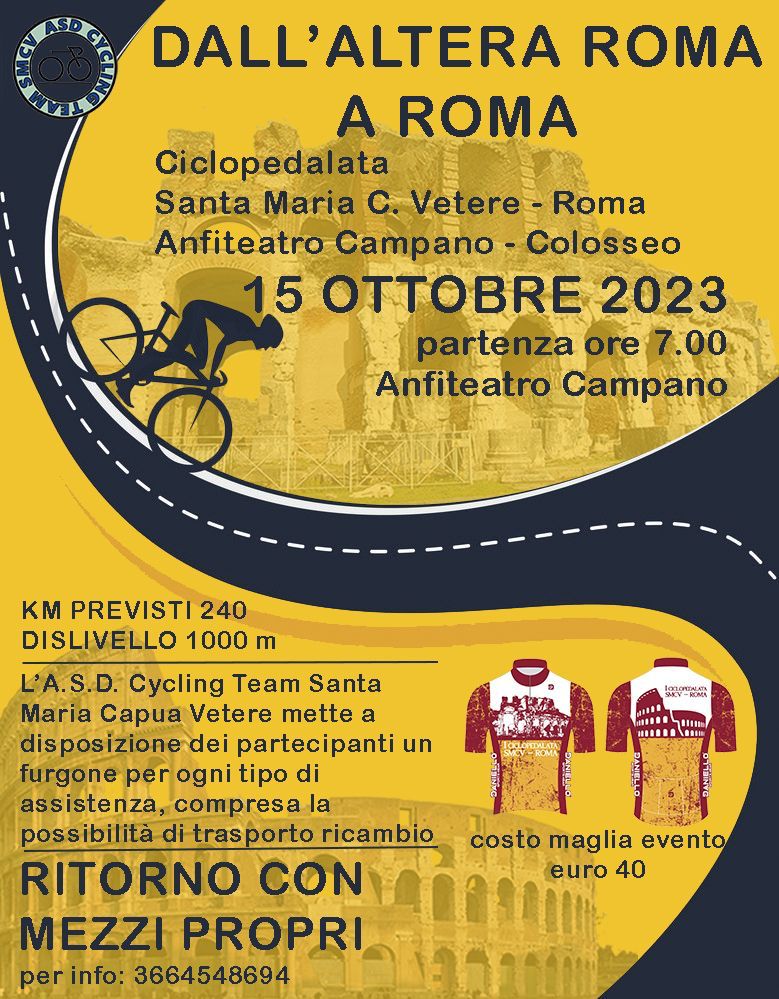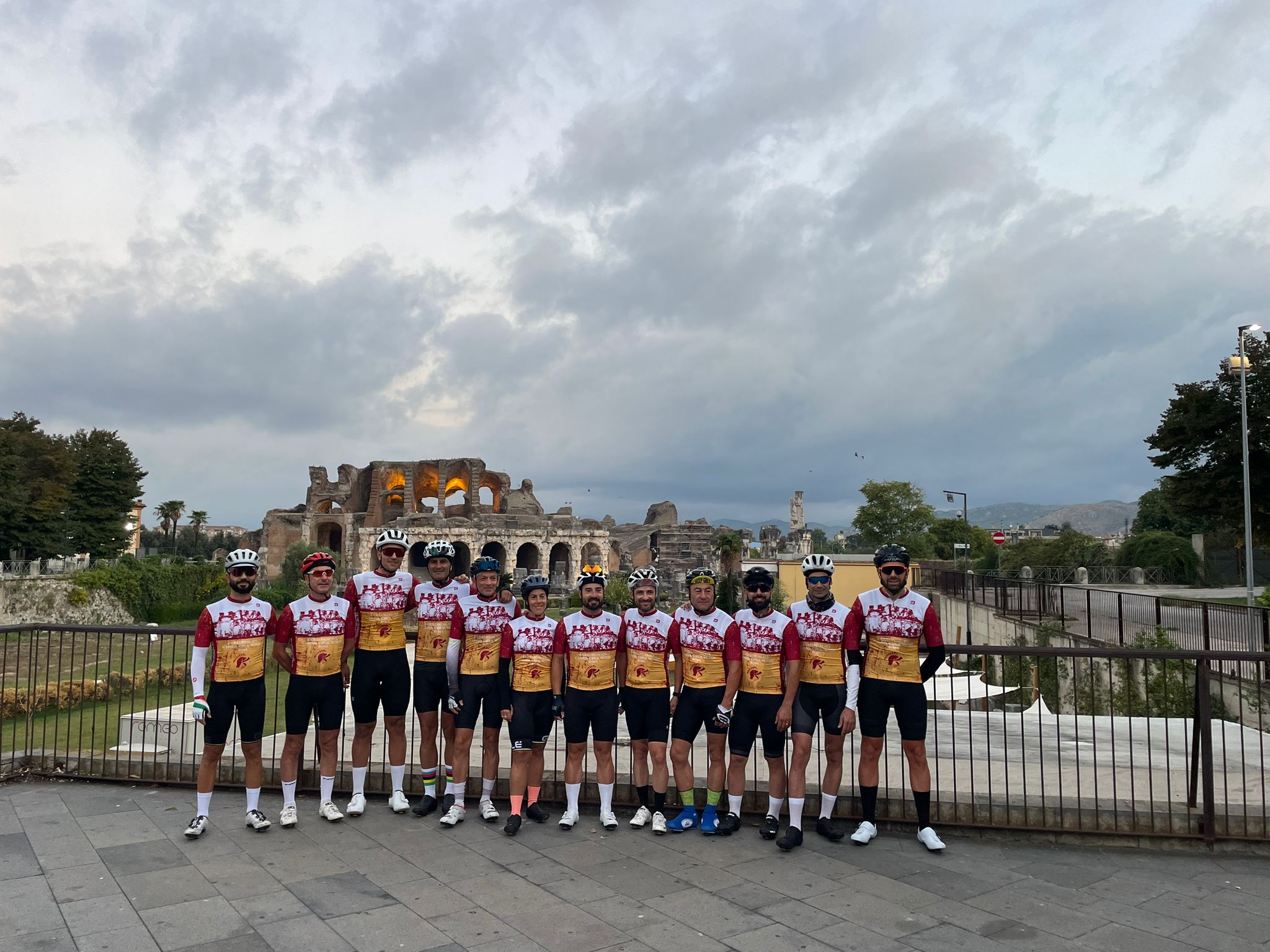 SANTA MARIA CAPUA VETERE – Sport, storia, divertimento e tanta, tanta passione per il ciclismo. Tutti questi ingredienti si racchiudono nella Prima Ciclopedalata intitolata “Dall’Altera Roma a Roma”, che è stata svolta domenica scorsa. Il Team Cycling SMCV ha organizzato una manifestazione, a cui hanno partecipato altre associazioni del casertano, richiesta da alcuni ciclisti sammaritani: in loro era chiara la voglia di partire dall’Anfiteatro Campano e raggiungere in bici il Colosseo. Così il club sammaritano si è dato da fare ed ha ideato una giornata indimenticabile per chi è appassionato delle due ruote. Di buon mattino, alle 7, esattamente 20 ciclisti sono partiti dalla meraviglia ubicata nella vecchia Capua, l’Altera Roma, e alle 16, dopo oltre 9 ore, sono giunti davanti al Colosseo.