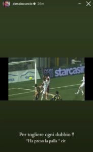 Attraverso il suo profilo Instagram l’attaccante della Casertana Alessio Curcio ha pubblicato un video della gara di ieri tra Juve Stabia e Casertana, dove al 94′ il portiere delle vespe Thiam esce il malo modo proprio su Curcio commettendo fallo da rigore ma per l’arbitro il sig. Galipò di Firenze il contatto è stato giudicato regolare. “Per togliere ogni dubbio, ha preso la palla”.
