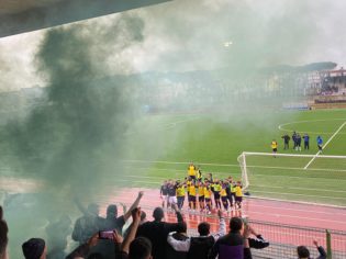 Secondo tempo. Girandola di cambi per entrambe le squadre, la Sessana va vicina al tris al 65’ con il tiro a giro di Massimo Granato con Gallone che guarda immobile il pallone. Tre minuti dopo i gialloblù riescono a triplicare, ripartenza con Palumbo che mette il pallone al centro, respinta di Laezza che trova pronto Castellano che di prima intenzione lascia partire un destro che termina all’incrocio, prima rete ed eurogoal del centrocampista arrivato a dicembre che fa impazzire il settore ospiti. Negli ultimi venti minuti i gialloblù gestiscono il pallone e provano timidamente a trovare il quarto goal, Cellole pericoloso con un tiro-cross deviato da Caiazzo che sbatte sulla traversa e termina in angolo. Tre minuti di recupero decretati dal direttore di gara, a Sessana al triplice fischio può festeggiare vittoria nel derby e ri-supera la Virtus Afragola prossima avversaria al “Prassino”, può partire la festa dei tanti tifosi presenti in trasferta, una tribuna tinta di gialloblù!