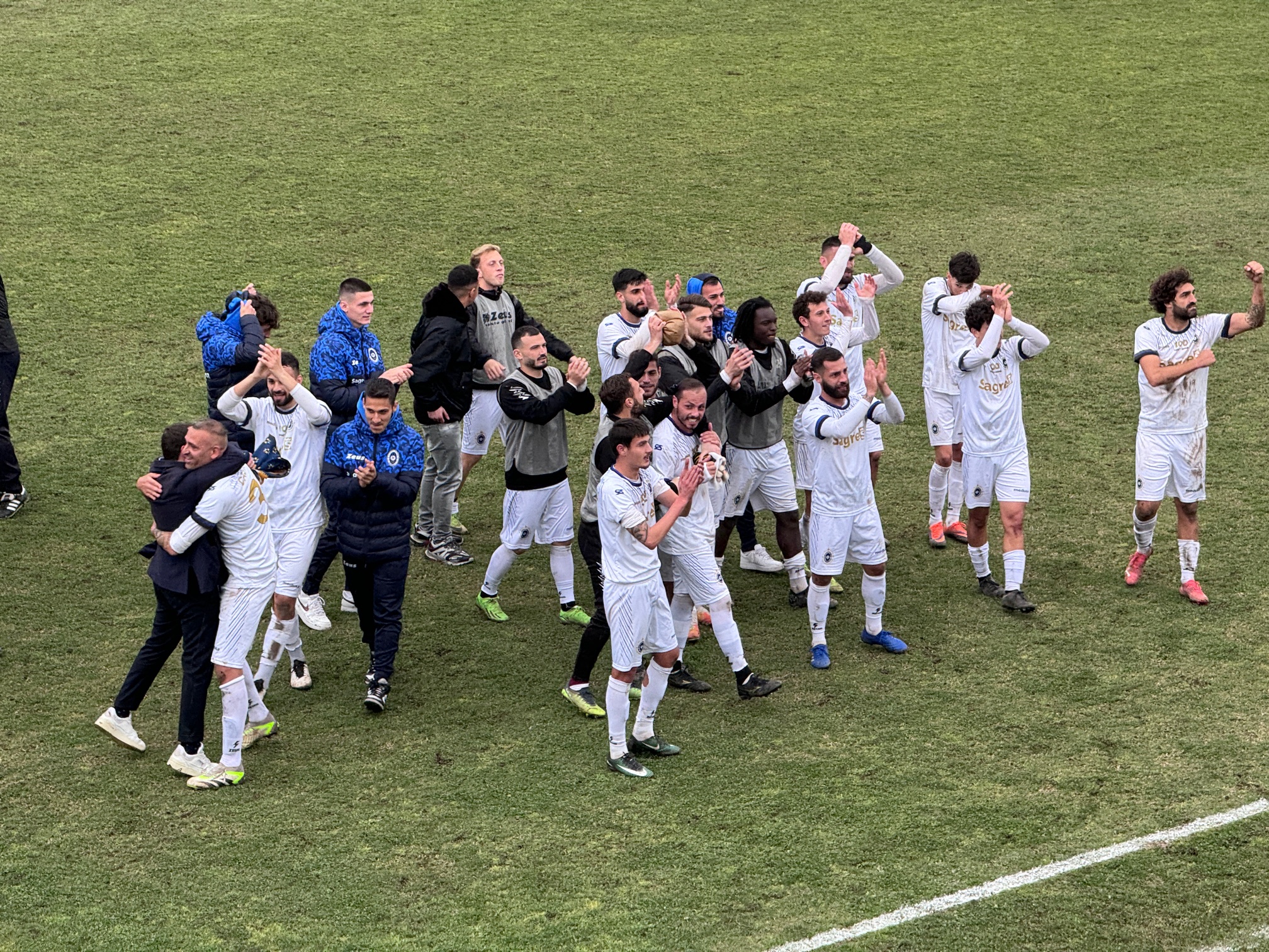Rispetto all’ultima uscita dentro Gemito dall’inizio e Mansi che rientra dalla squalifica. Panchina per Marone e Battistelli. Castro e Messina recuperati in tempo e partono titolari. Gara particolarmente sentita vista la posta in palio. Sugli spalti oltre 500 persone per salutare i cento anni di storia nerazzurra. Gli ospiti, affatto intimoriti, partono bene e provano a prendere il pallino del gioco. Una punizione alle stelle di Bosi e una conclusione da fuori di Spila abbondantemente alta. Sammaritani un po’ contratti e poco brillanti, ma non rischiano nulla in difesa anche se in attacco faticano a trovare spazi. Nella ripresa si presenta un Gladiator più propositivo e inizia subito a spingere sull’acceleratore. Mister Foglia Manzillo guarda in panchina e inserisce Castaldo e Liccardi. Mossa azzeccata perché i due confezionano l’azione della vittoria al 79’. Assist di testa dell’ex Stabia e gol di Liccardi che fa letteralmente impazzire il ‘Piccirillo’. Reazione avversaria praticamente nulla e nel finale Onesto sfiora due volte il raddoppio. Finisce al 96’ e inizia la festa nerazzurra.