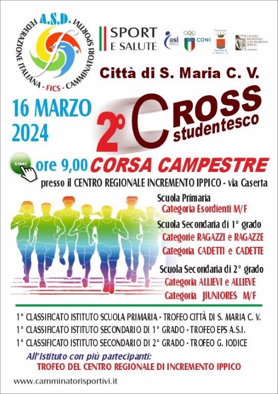 Il “2° Cross Studentesco” è un entusiasmante appuntamento sportivo che vedrà protagonisti giovanissimi atleti provenienti da tutti gli istituti scolastici di Santa Maria Capua Vetere e si svolgerà la mattina di sabato 16 marzo dalle ore 9.