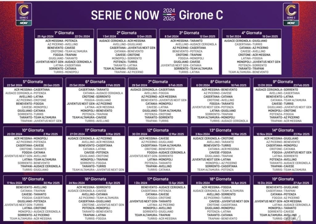 Sorteggiati questa mattina i calendari della prossima serie C. Si parte domenica 25 agosto e chiusura prevista per il 27 aprile. Sosta natalizia il 29 dicembre. La Casertana esordirà a Latina