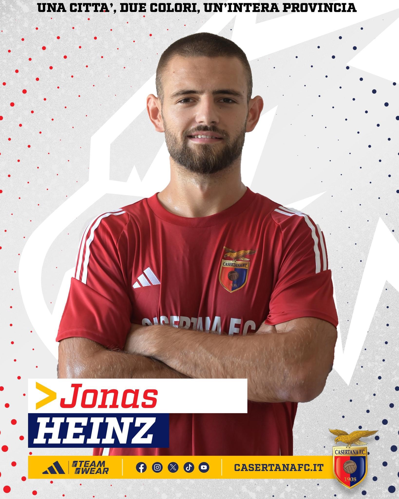La Casertana FC comunica di essere assicurata le prestazioni sportive del calciatore Jonas Heinz.
