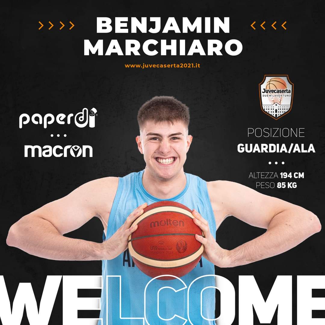 Un altro giovane dalle interessanti prospettive allunga il roster della Paperdi Juvecaserta. Si tratta della guardia italo argentina Benjamin Marchiaro Fiore. Alto 194 cm, è nato a Buenos Aires il 28 maggio del 2004, e dopo le giovanili, è cresciuto nelle fila della pallacanestro Varese con cui nel 2020/21 ha preso parte al campionato under18, giocando contemporaneamente anche nella squadra lombarda di serie C (15,1 punti di media nel 2020/21 e 12,3 nel 2021/22). Nel 2022/23 ha collezionato nove presenze in Legadue con la maglia della Kienergia Rieti, mentre lo scorso anno è stato tesserato dal Bakery Piacenza in serie B nazionale (15 partite, 2,6 punti, 2,1 rimbalzi di media) che ha lasciato a gennaio per tornare in Legadue con la Old wide West di Udine con cui ha disputato nove gare.