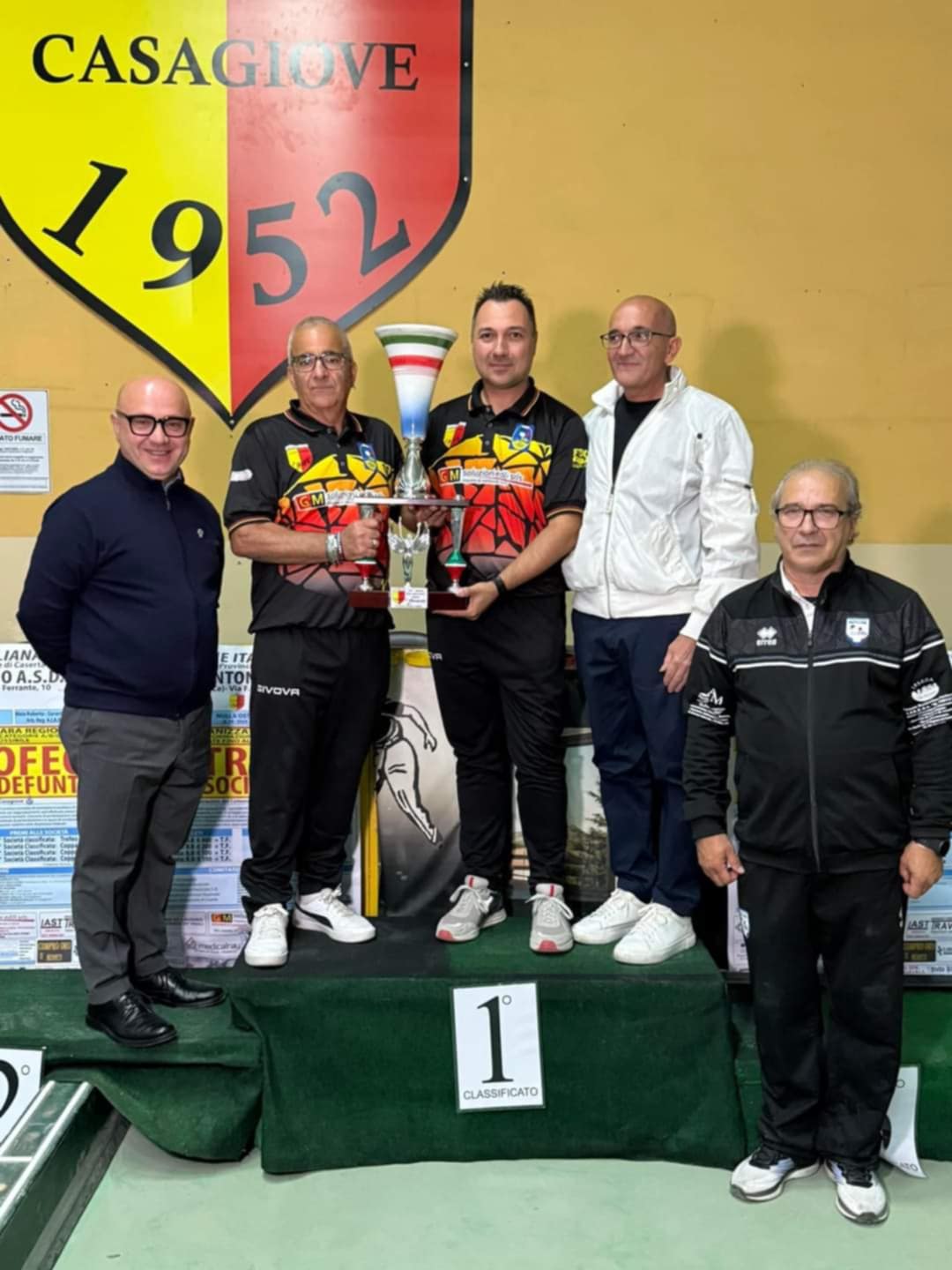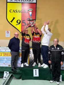 Una serata straordinaria di sport, al termine di un bellissimo fine settimana dedicato alle bocce nella città di Casagiove. La vittoria di Trizio Domenico e Massimo Russo della società di casa del Circolo sportivo Sant’Antonio ha chiuso l’evento clou della G.S.S. Antonio A.S.D. di Casagiove organizzato in collaborazione con la Federazione italiana Bocce – Comitato Provinciale di Caserta, come tributo affettuoso ai soci scomparsi. Si è conclusa in definitiva un’intensa domenica di sfide avvincenti che ha visto numerose squadre della Campania partecipanti alla gara. Una giornata ricca di incontri terminata verso sera nell’impianto di via Ferrante a Casagiove, dove si è svolta la cerimonia di premiazione dei vincitori, veri professionisti delle bocce. L’ordine di classifica.