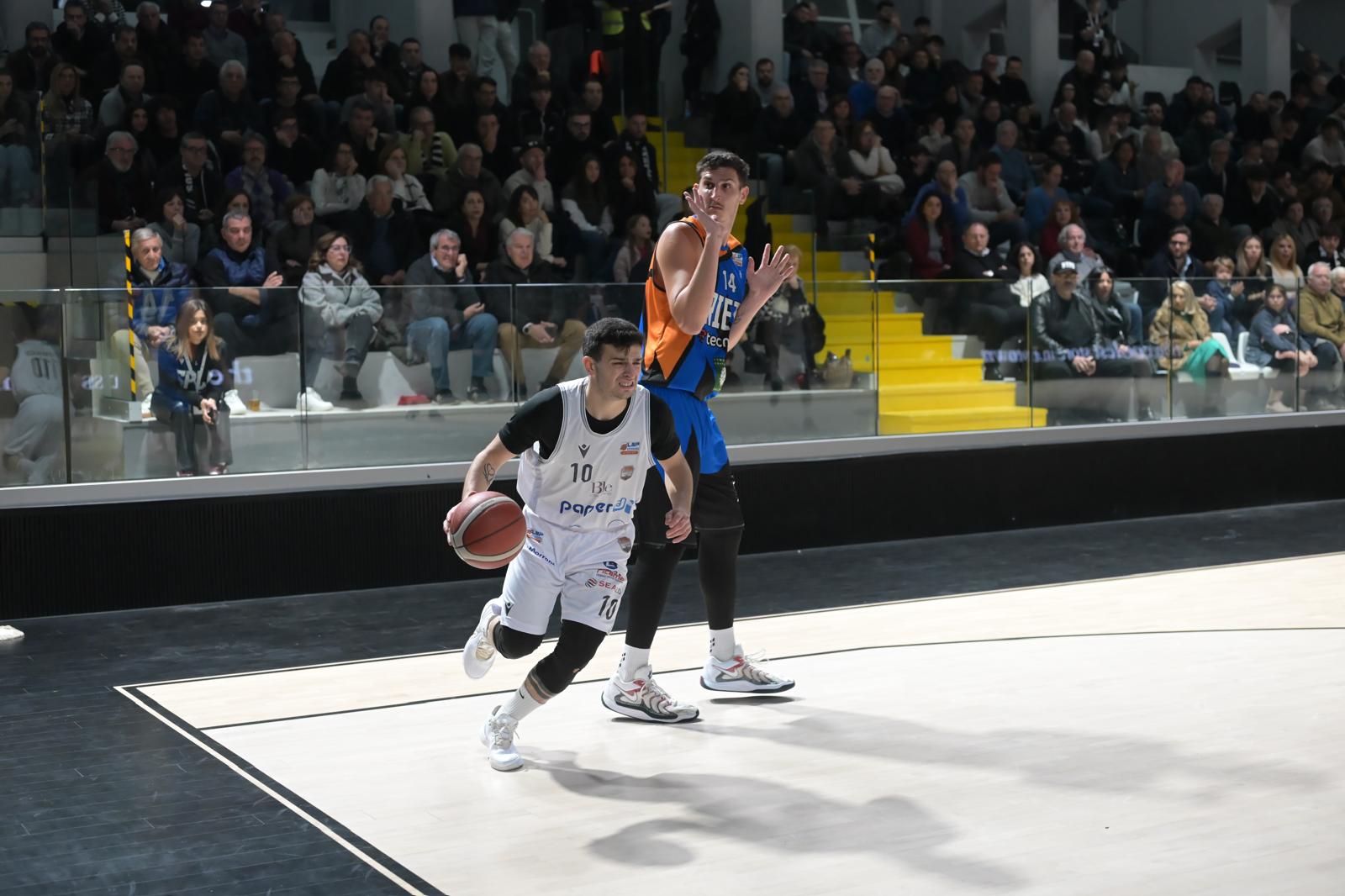 Cinque punti consecutivi di Giorgi e Marchiaro hanno ridato la doppia cifra ai padroni di casa che sono sempre riusciti a controllare i tentativi di riavvicinamento dei reatini non trovando difficoltà né contro la zona, né sul pressing messo in campo dalla formazione ospiti per cercare di rientrare in partita. La Paperdi ha viaggiato quasi costantemente con 10/12 punti di scarto confermato fino alla sirena finale.