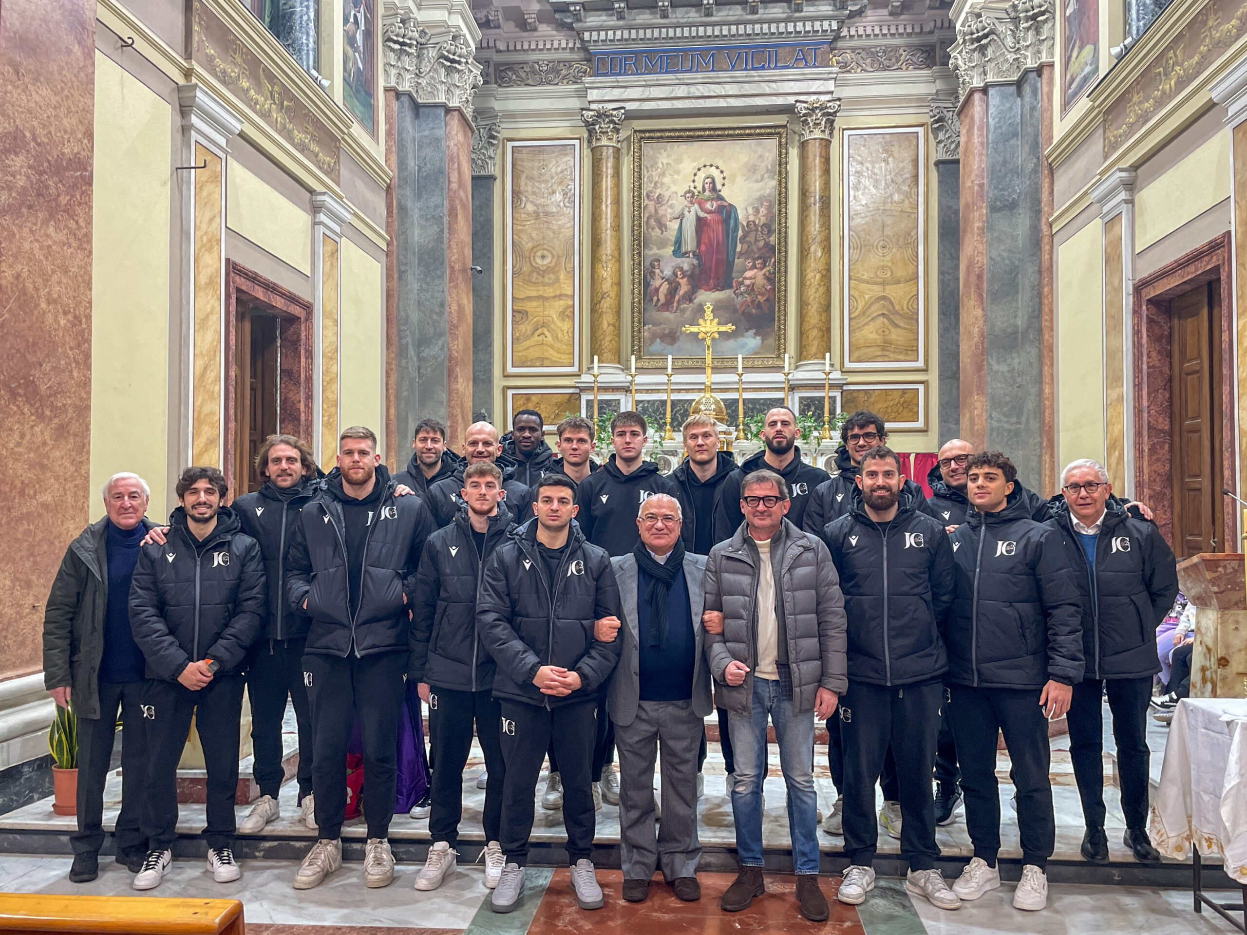 Il presidente Farinaro, coach Cagnazzo, i dirigenti e l’intera prima squadra della Paperdi Juvecaserta 2021 hanno partecipato questa mattina alla tradizionale cerimonia della Festa dell’Immacolata, celebrata nel Santuario dei Salesiani di via Don Bosco. Accolti dal direttore, don Antonio D’Angelo, i bianconeri hanno assistito alla rielaborazione teatrale della nascita dell’Oratorio di San Giovanni Bosco ed al successivo intervento dello stesso Direttore dell’Opera Salesiani di Caserta.