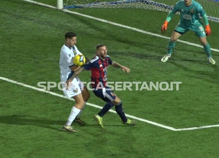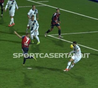 La sconfitta subita oggi col Latina non è certo figlia di mancate decisioni arbitrali, ma in questo momento alla Casertana non ne va bene una. Visionando attentamente le immagini in diretta, siamo riusciti a selezionare tre netti falli in area di rigore non sanzionati dal direttore di gara signor Gemelli di Messina. Dopo pochi minuti Carretta recrima per un tocco di braccio di Crecco in area. Colpo di testa e braccio del calciatore laziale. Si prosegue.