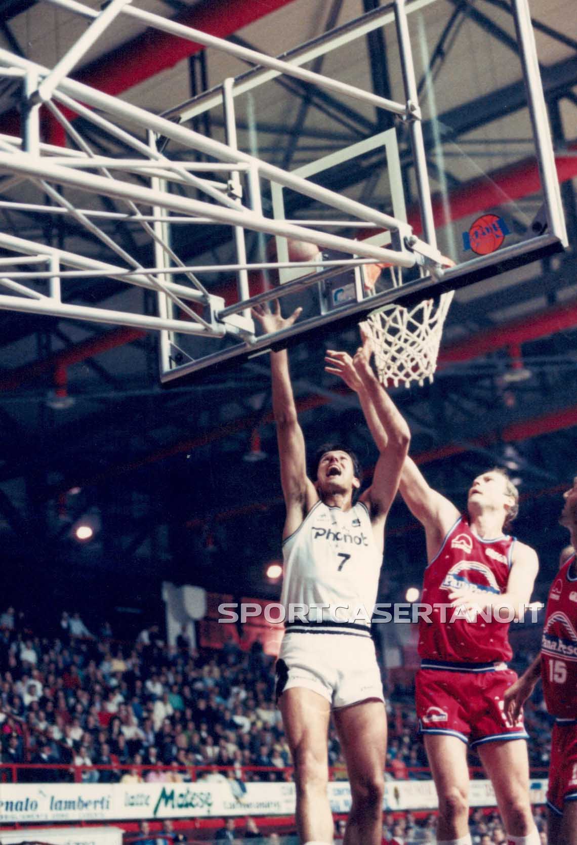 Al Palapiccolo arriva Montecatini ed è tempo di amarcord per i tifosi bianconeri. A partire da fine anni novanta con il netto successo sulla Panapesca grazie ai 45 di Oscar e 23 di Dell’Agnello. Percentuali al tiro impressionati per i casertani che chiuderanno col 70% da due e 55% da tre. Toscani con i soli Niccolai (30) e Knego (27) a salvare la bandiera. Le due compagini si ritrovarono poi nel ’92-’93 e al Palamaggiò la spuntò nuovamente la Phonola. Precisamente dicembre ’92 con Caserta che vinse 81-80 grazie all’ultimo canestro di Gentile e tiro finale della disperazione di Mc Nealy. Padroni di casa meglio ai rimbalzi e alla fine saranno 19 per Anderson e 21 per il capitano. Anchisi e Boni (18) non bastarono agli ospiti.