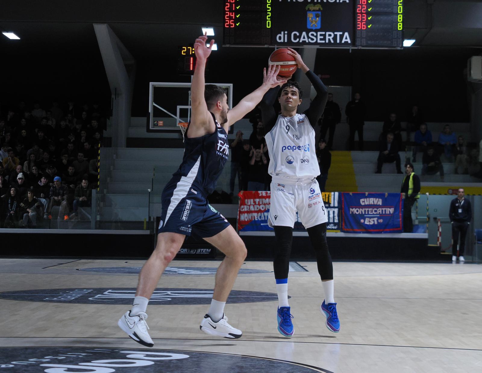 La Paperdi Juvecaserta si conferma inarrestabile sul parquet del palaPiccolo aggiudicandosi il confronto con la quotata Fabo Herons Montecatini al termine di una gara condotta praticamente dal primo all’ultimo minuto, se si eccettua un mini-sorpasso dei toscani a metà della prima e sul finire della terza frazione di gioco. Soprattutto i primi 20’ di gioco hanno visto la formazione bianconera esprimere un buon basket nelle due metà del campo con un +8 all’intervallo lungo (52-44) che ha fotografato una gara disputata su buon ritmi, ma anche con buona precisione al tiro da entrambe le squadre, come dimostrano le cifre dei primi 20’: per Caserta 56% complessivo al tiro frutto del 52% da 2 e del 64% da tre condito dal 90% ai liberi e 17 rimbalzi contro il 48% complessivo determinato dal 50% da 2 e dal 45% da 3 oltre al 64% ai liberi ed 11 palloni recuperati sotto i tabelloni.