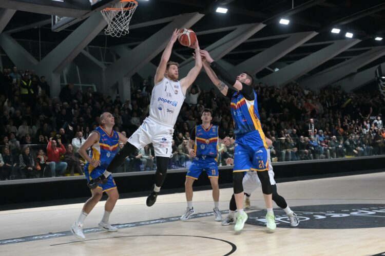 Dopo il mini-intervallo la Paperdi ha sbagliato qualcosa di troppo e Roma ne ha approfittato per riprendere 7 punti vantaggio (57-64). È stata una tripla di Mastroianni a scuotere i padroni di casa, che poi sono stati bravi a riagguantare Roma grazie soprattutto a tre triple consecutive di Matteo Laganà, che ha fissato la parità prima a quota 68 e, poi, a 73. Ancelotti ha realizzato il canestro del 75-73 prima di una serie di errori da ambo le parti. L’ hanno chiusa due liberi di Conti a 5” dalla sirena finale.