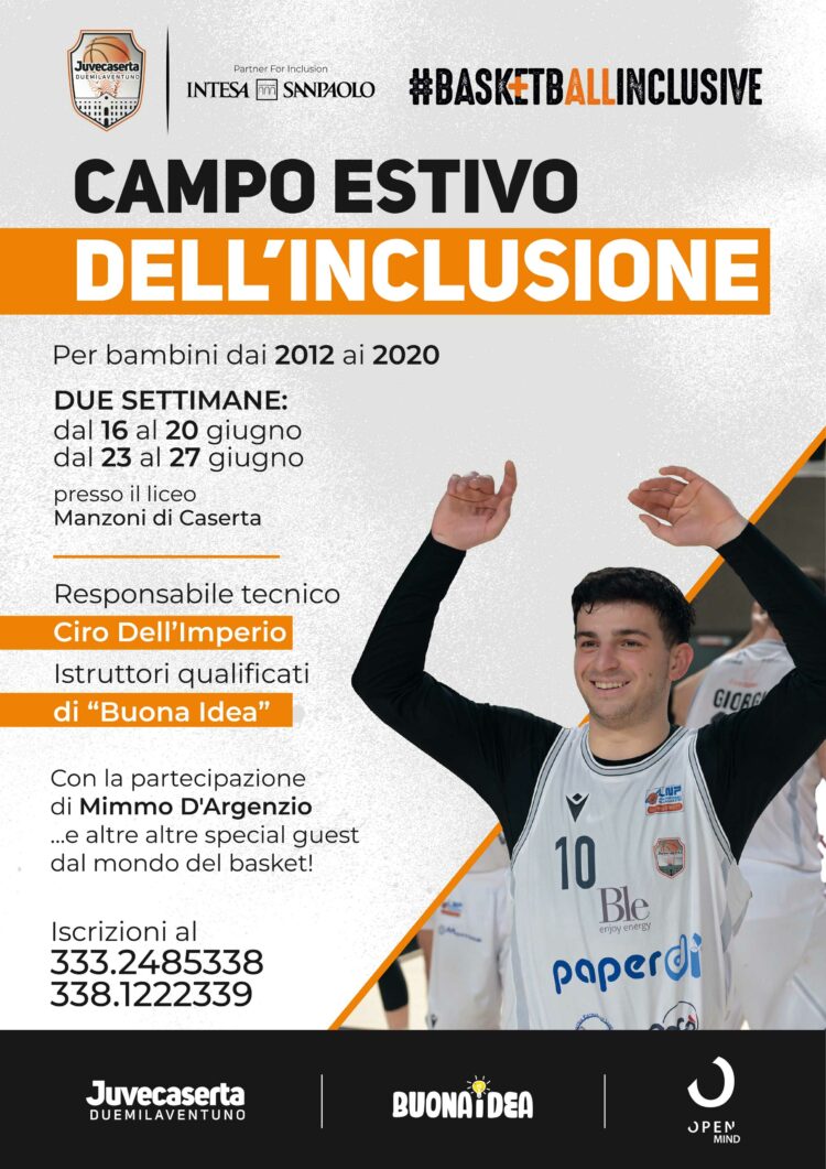 Prende il via lunedì 16 la prima settimana del Camp per l’inclusione promosso ed organizzato dalla Juvecaserta 2021 con la collaborazione delle Associazioni Nuova Idea ed Open Mind. Il camp – che si avvale del supporto di Intesasanpaolo, partner for inclusion del club bianconero – è riservato ai ragazzi ed alle ragazze nati dal 2012 al 2020 e rappresenta un’opportunità unica di avvicinarsi al basket, migliorare le proprie abilità cestistiche, fare nuove amicizie e vivere un’esperienza indimenticabile, ma anche creare un’occasione concreta di incontro e scambio tra giovani atleti e ragazzi con disabilità, per dimostrare come lo sport possa abbattere barriere, costruire relazioni e promuovere una cultura autenticamente inclusiva.