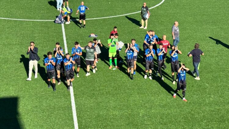 Buona la prima del Gladiator che al Bisceglia di Aversa batte 5-0 la Puteolana. Inizia col piede giusto il campionato dei sammaritani che dopo la doppia vittoria in Coppa Italia impongono la propria legge anche in campionato. La partita si stava mettendo subito sui binari sbagliati quando al 6’ Picascia perde palla a limite dell’aria ma Auriemma grazie i nerazzurri. Al 15 ci prova l’ex Mancini a sorprendere la difesa sammaritana ma la sua mira è imprecisa. Al 21 protagonista Marino che di piede salva sulla conclusione di La Pietra. Il Gladiator prova a creare qualche pericolo non riuscendoci e si va al riposo sullo 0-0. Nella ripresa gli ospiti ci provano subito con un tiro di La Pietra ma la sua mira è imprecisa. Il match cambia volto al 69’ quando per doppio giallo la Puteolana finisce in dieci per l’espulsione di Pissinis. Con la superiorità numerica il Gladiator prende campo e trova il vantaggio al 77 con Mansour. Lo stesso numero undici nerazzurro replica 2’ dopo. Al minuto 85 arriva il tris con Manzo bravo a svettare più alto di tutti su corner. Pochi secondi dopo e il poker porta la firma di Liguori bravo a girarsi in area e trafiggere Cabriglia. Al 92 c’è gioia anche per Giorgio che si invola verso la porta avversaria e trafigge l’estremo difensore. Al triplice fischio è gioia sammaritana.