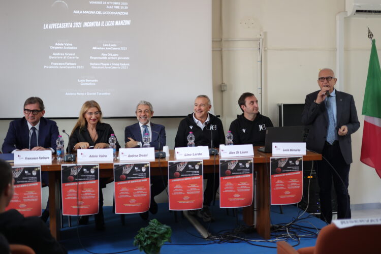 La storia cittadina, il valore dello sport, il rispetto delle regole, il lavoro di squadra, la solidarietà: tutti valori che hanno costituito il fulcro dell’incontro della Juvecaserta 2021 con i giovani studenti del Liceo Manzoni; un incontro reso ancor più significativo dall’importante presenza del Questore di Caserta Andrea Grassi. L’idea che lo sport non è soltanto un’attività fisica o una competizione, ma un vero e proprio percorso di formazione personale, capace di trasmettere valori, insegnamenti e competenze utili in ogni ambito della vita è stato al centro degli interventi della Dirigente scolastica, Adele Vairo, del presidente della Juvecaserta, Francesco Farinaro, del questore Andrea Grassi e del coach del club bianconero, Lino Lardo, presente all’incontro con il responsabile del settore giovanile, Alex Di lauro, e gli atleti Stefano Pisapia e Matej Radunic. Il tutto coordinato dal giornalista Lucio Bernardo ed arricchito con video che hanno ripercorso non solo la storia del basket cittadino, ma soprattutto lo storico legame esistente tra la realtà cestistica ed il territorio casertano.