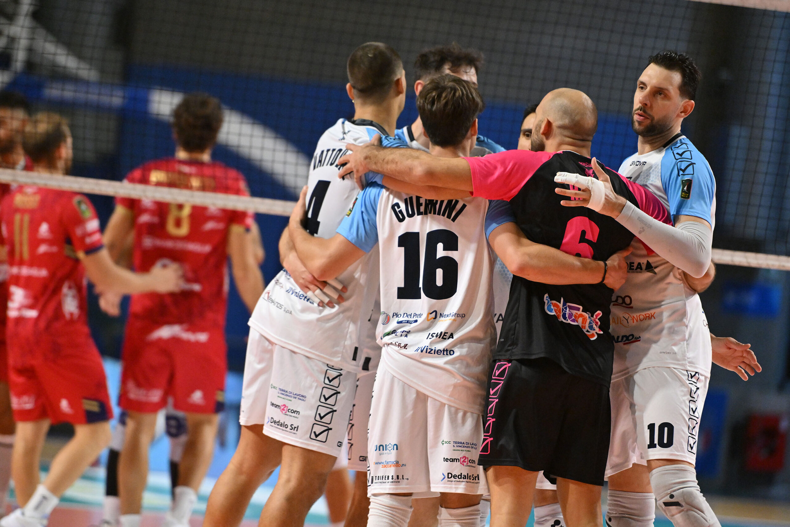 Nonostante il risultato, il pubblico del PalaJacazzi ha accompagnato la squadra con passione dal primo all’ultimo pallone, applaudendo anche a fine gara i ragazzi in maglia biancoazzurra per l’impegno e la generosità.