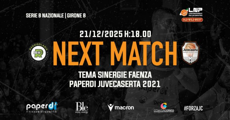Penultimo turno del girone di andata con la Paperdi Juvecaserta 2021 impegnata domani sera, domenica, alle 18.00, nell’ostica trasferta di Faenza, ospite del locale quintetto della Tema Sinergie, che ha una striscia aperta di due vittorie consecutive. Ancora una volta sarà una formazione rimaneggiata a scendere sul parquet del palacattani: confermate le assenze di Laganà e Vecerina, coach Lardo spera di recuperare nelle ultime ore quanto meno Nobile e Sperduto.