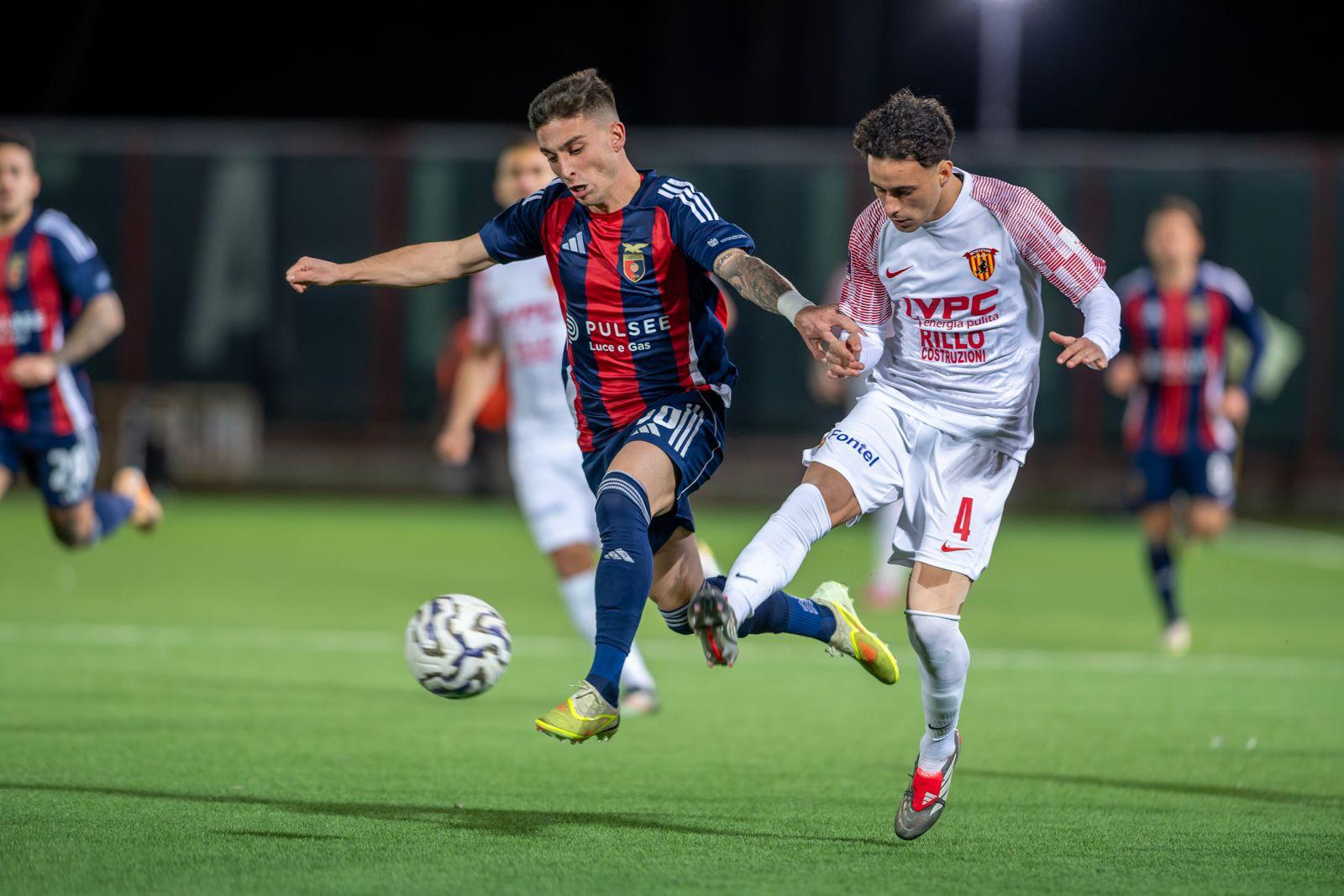 PRIMO TEMPO. Errore a metà campo del Benevento, prende palla Casarotto che si avvia veloce verso l’area avversaria e lascia partire un sinistro che finisce a lato non lontano dal palo, alla sinistra di Vannucchi, all’11’. Ancora una ripartenza rossoblu con Bentivegna che, egoisticamente, calcia a rete invece di servire un compagno libero a sinistra. Al 15′ bravo De Lucia a mettere in angolo una deviazione di testa (errata) di Toscano su un calcio di punizione del Benevento. Ancora falchetti pericolosi con Vano che galoppa sulla fascia e calcia, infine, alto, al 17′. Al 25′ Casarotta ruba palla a centrocampo ma il suo tiro-cross è preda del portiere. Buon fraseggio da parte del Benevento, ma la manovra è lenta e i velocisti rossoblu, Casarotto e Bentivegna, sono sempre molto attenti ad approfittare di eventuali errori. Al 36′ cross dalla sinistra di Liotti, stacco di testa di Oukhadda, palla centrale, blocca Vannucchi. Su un calcio di punizione dalla destra, c’è una leggera trattenuta in area giallorossa su Bacchetti, l’arbitro lascia proseguire, ma, al 40′ mister Coppitelli richiede un controllo al FVS per valutare meglio la dinamica del presunto fallo. L’arbitro conferma la decisione di campo. Tutto regolare. Non succede nulla nei quattro minuti di recupero. Meglio la Casertana, comunque, in questa prima frazione di gioco. Molto bene il centrocampo.