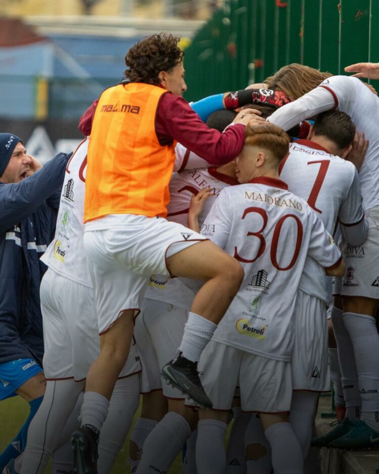 E’ stata la vittoria della città di Aversa. E’ stato il successo di un popolo, quello normanno, che ‘chiamato’ dalla società ha riempito il ‘Bisceglia’ per il derby contro l’Acerrana, che metteva in palio un pezzo importante della futura salvezza granata. I ragazzi di mister Sannazzaro non sbagliano nulla, chiudono in vantaggio il primo tempo con Giuseppe Esposito e poi ‘stampano’ il 2-0 con Messina che manda in estasi i tantissimi tifosi presenti sugli spalti. Per la prima volta la squadra del presidente Del Villano è fuori dalla zona ‘rossa’ della classifica. Ora un filotto di partite difficilissime: Nardò in trasferta, Virtus Francavilla in casa, Fidelis Andria e poi Sarnese prima di un nuovo scontro diretto, contro il Francavilla. Ma questa Real Normanna ora non ha paura di nessuno!