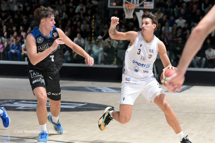 Brambilla e D’Argenzio colpiscono dall’arco per il +10 (39-49), poi è ancora il capitano a salire in cattedra con due triple consecutive che valgono il massimo vantaggio sul +16 (41-57).