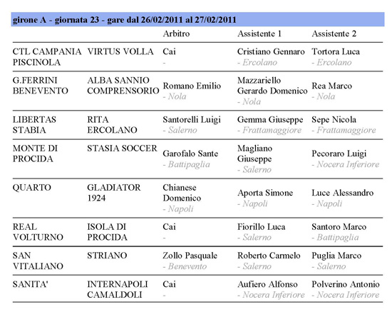 I direttori di gara impegnati sabato (24) e domenica (25 settembre) nel campionato di Promozione girone A.