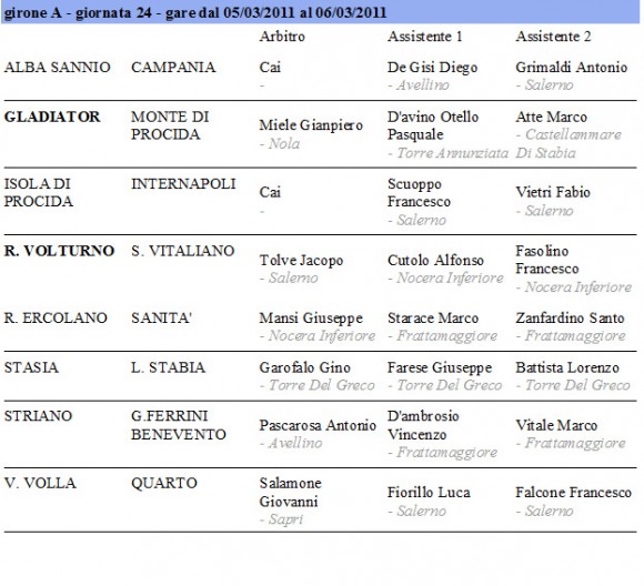 I direttori di gara impegnati domenica 25 settembre nel campionato di Serie D girone H.